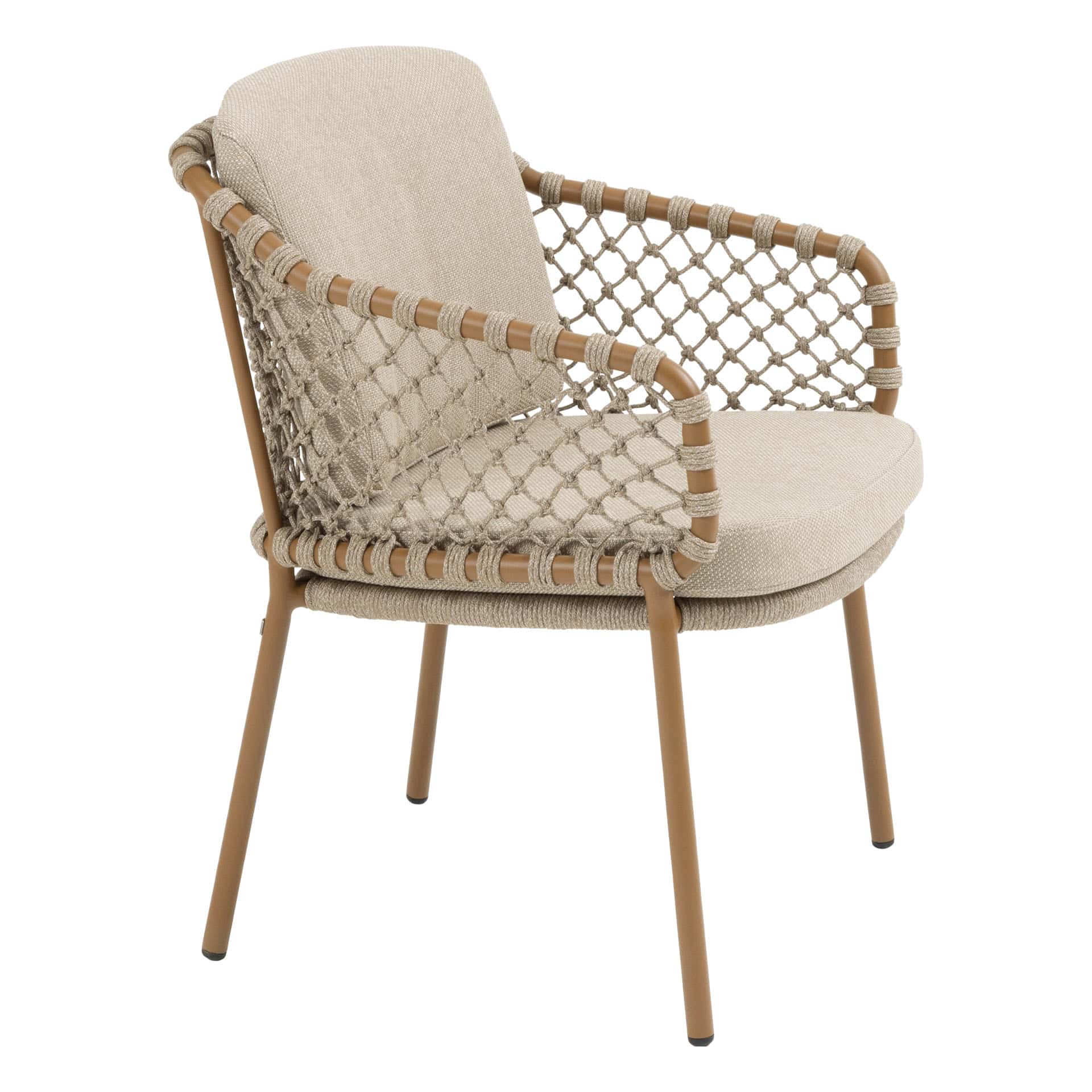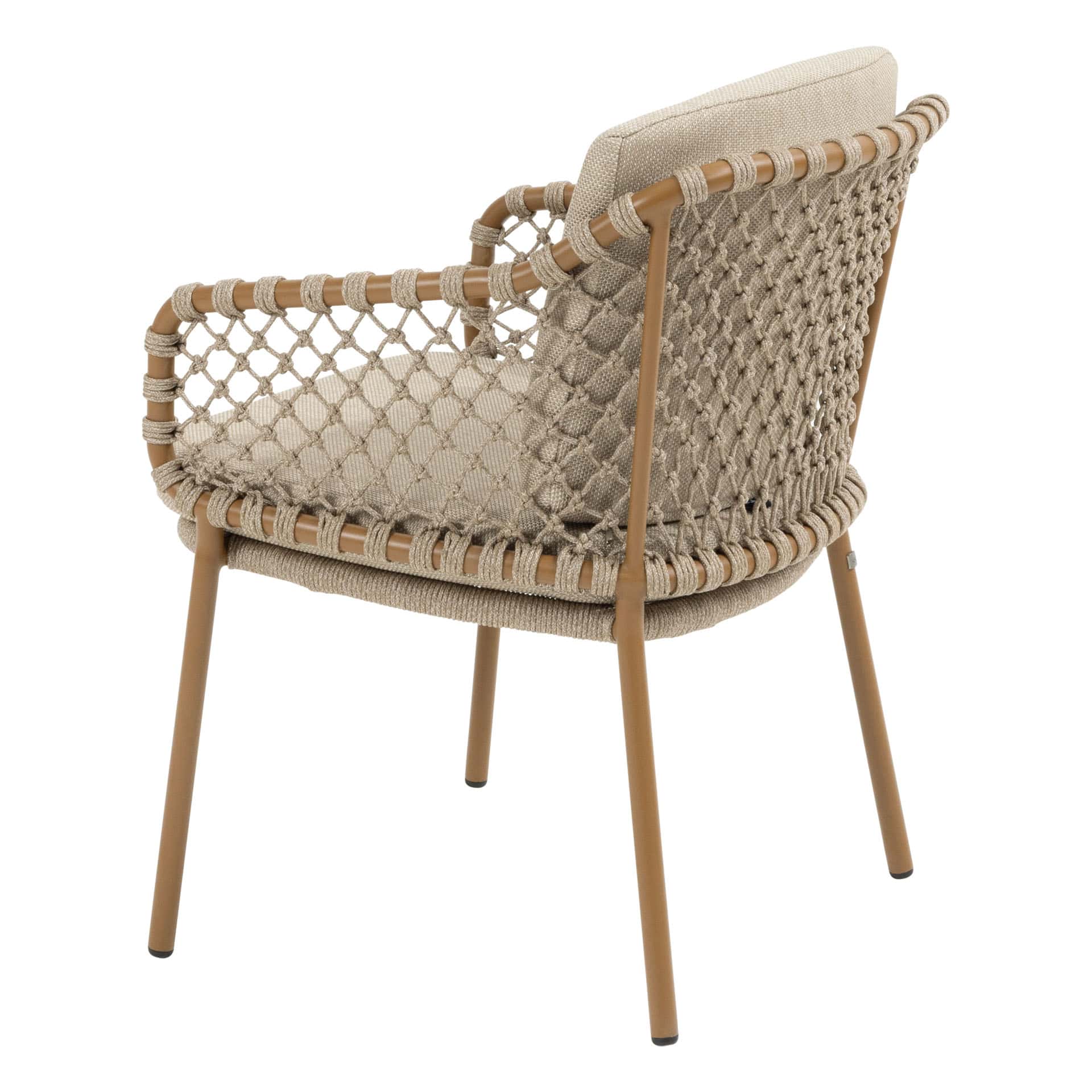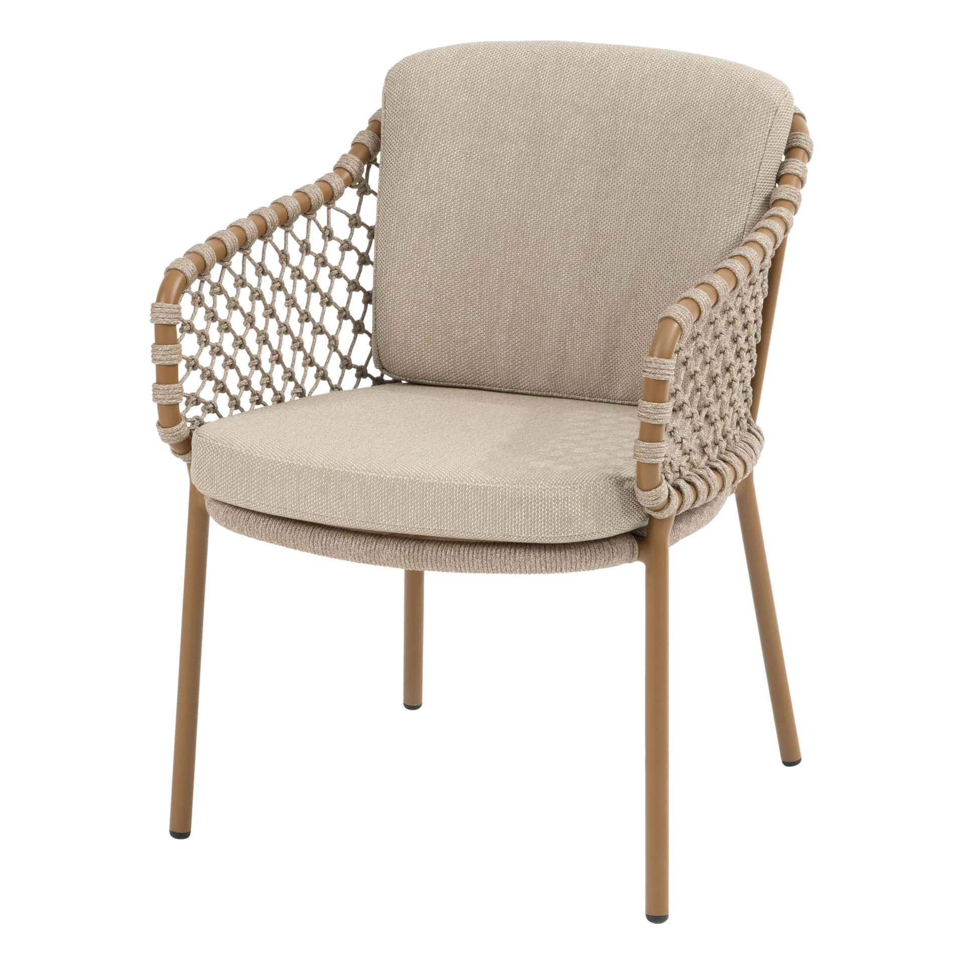 De Martinique dining stoel combineert een elegant modern design met hoogzitcomfort en verfijnde afwerking. Het gepoedercoate aluminium frame in warme Amber-kleur vormt een stijlvolle basis, terwijl het handgeweven rope en de twee all-weather kussens zorgen voor optimale ondersteuning en ontspanning tijdens lange diners in de buitenlucht.