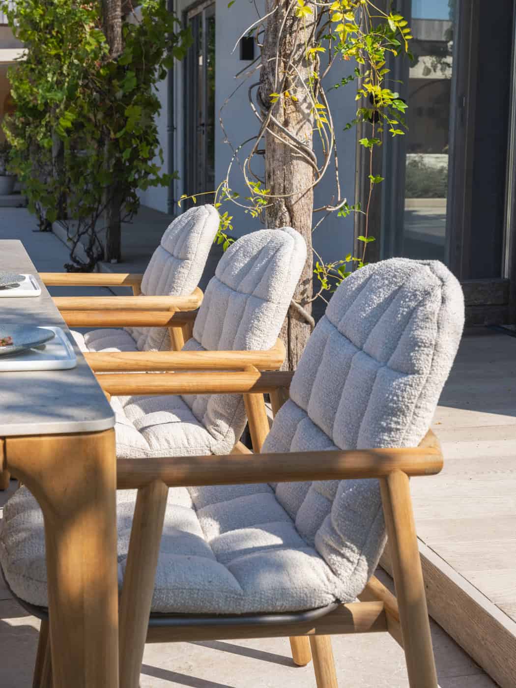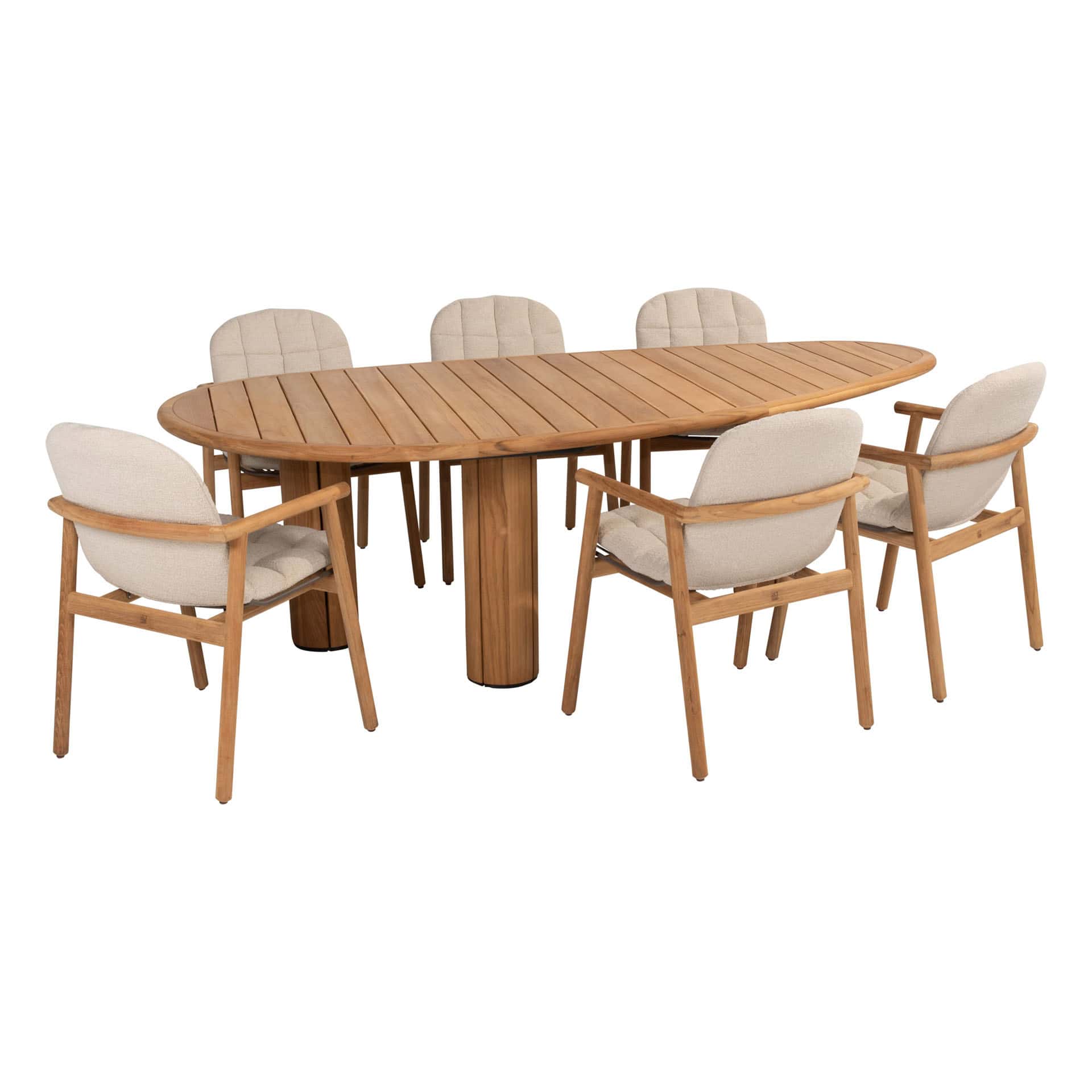 4 Seasons Outdoor Samos dining stoel + Taste 4SO Corsica tafel kiezel-vorm teak 240 cm